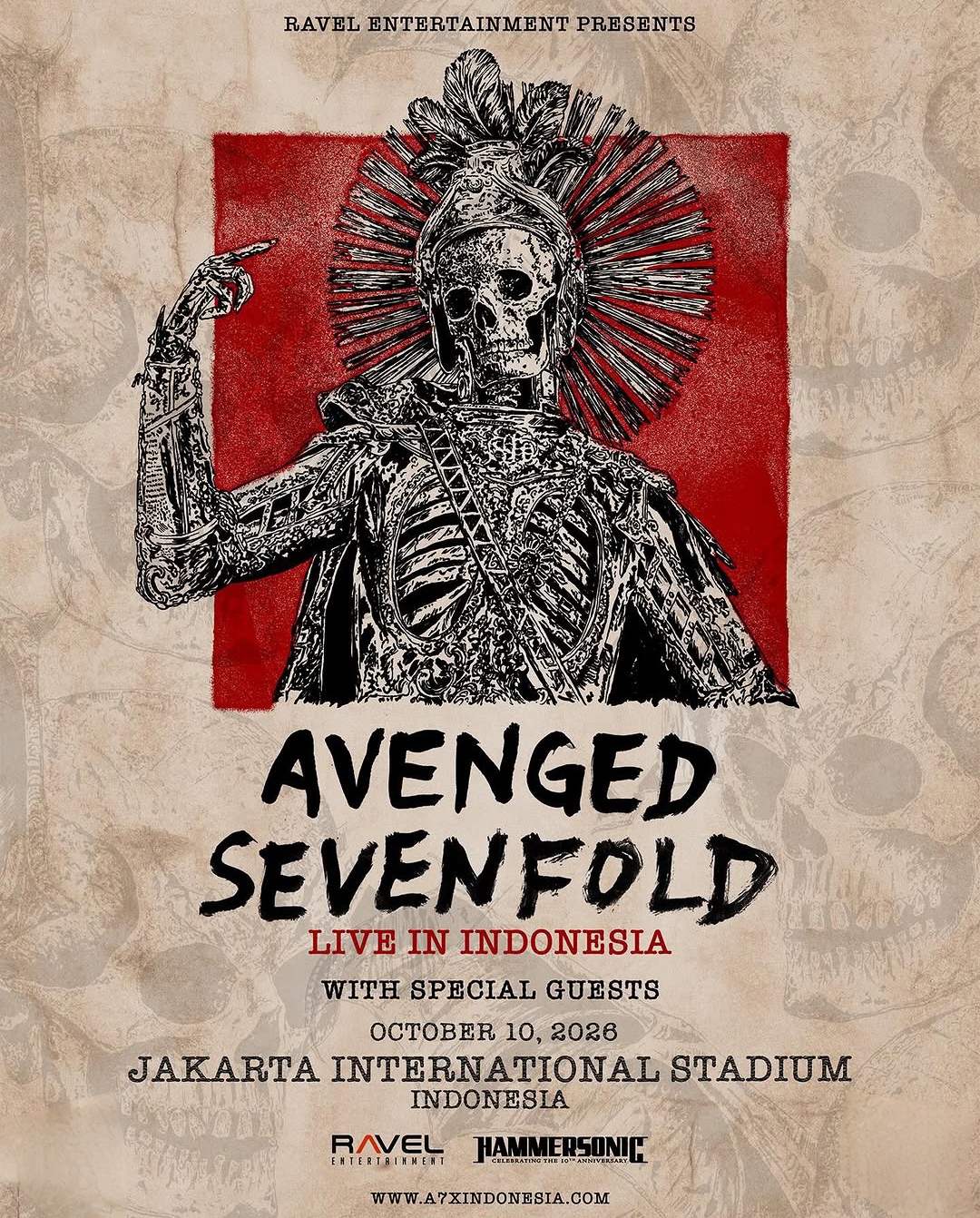 Promotor Ravel Entertainment resmi mengumumkan kehadiran Avenged Sevenfold sebagai bagian dari tur internasional mereka. Konser ini akan digelar di Jakarta International Stadium (JIS), yang dikenal sebagai salah satu venue terbesar dan termegah di Indonesia.