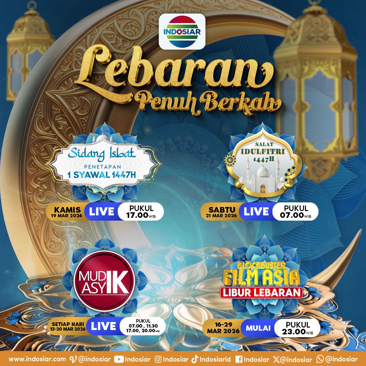 Tak hanya itu, pemirsa juga dapat menyaksikan siaran langsung Sidang Isbat serta Salat Idulfitri dari Masjid Istiqlal, menjadikan INDOSIAR sebagai paket lengkap tayangan Lebaran.