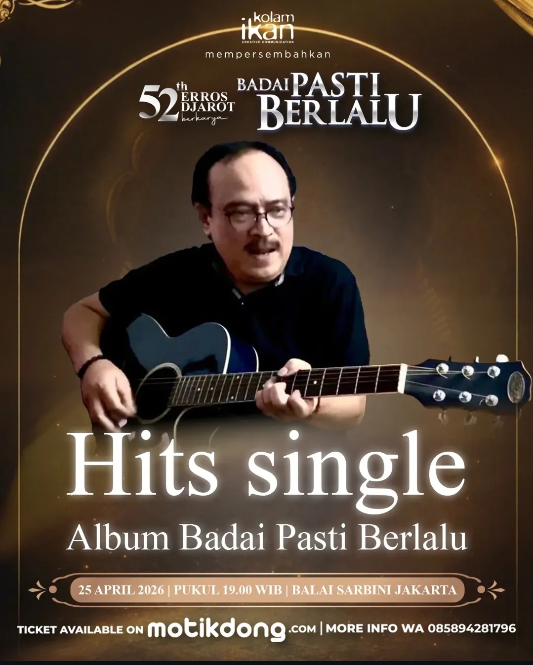 Wartabuana.com —  Di tengah derasnya arus musik digital, konser “Badai Pasti Berlalu – Live in Concert” justru menjadi bukti bahwa karya klasik tak pernah kehilangan tempat di hati publik—bahkan kembali bersinar lewat perayaan 52 tahun perjalanan musik Erros Djarot.