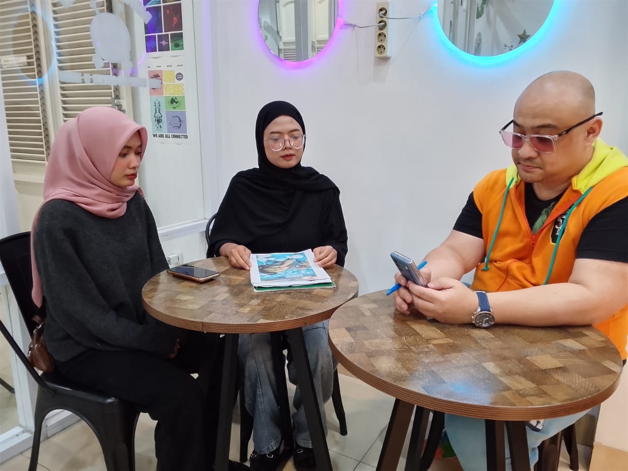 Wulan Nurmalasari korban KDRT (tengah) didampingi salah satu anggota keluarganya bertemu Paralegal Emmanuel Alvino, di Bandung Sabtu (20/12/2025).